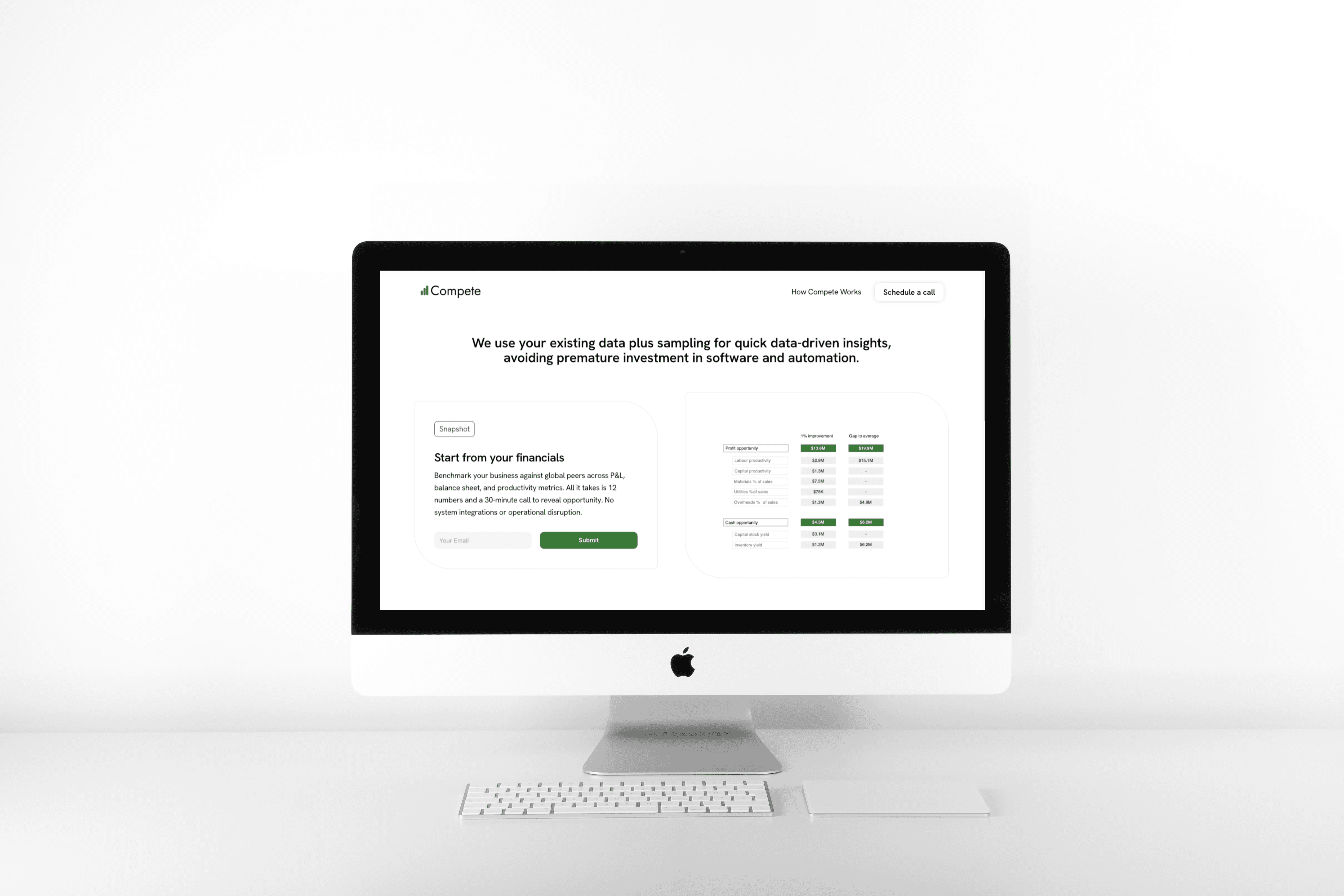 I designed a website for Compete, built with AI-assisted design tools to make manufacturing performance easier to understand.